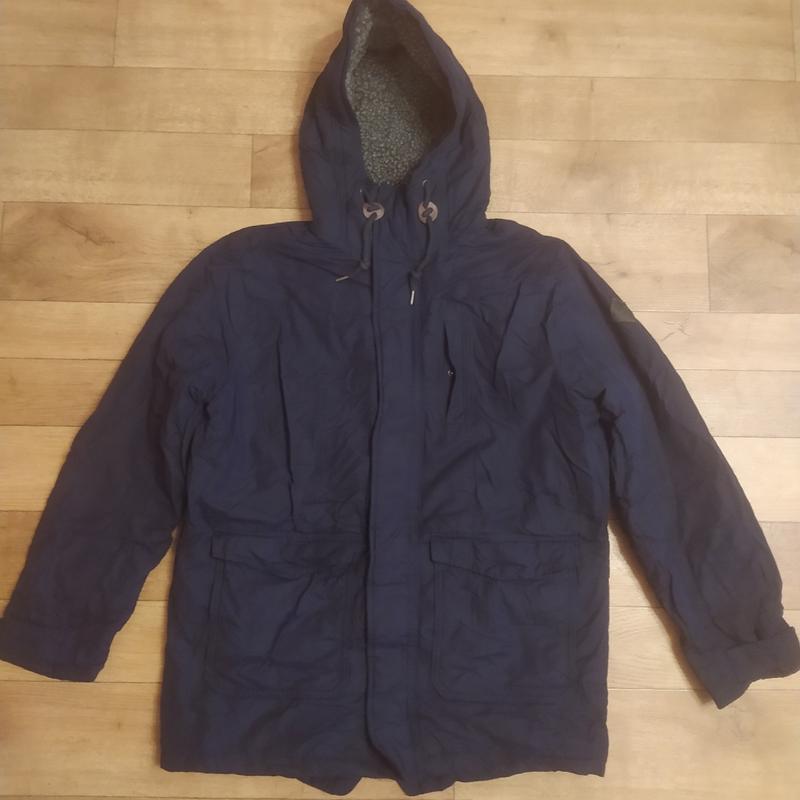 Чоловіча парка темно-синього кольору тепла та функціональна