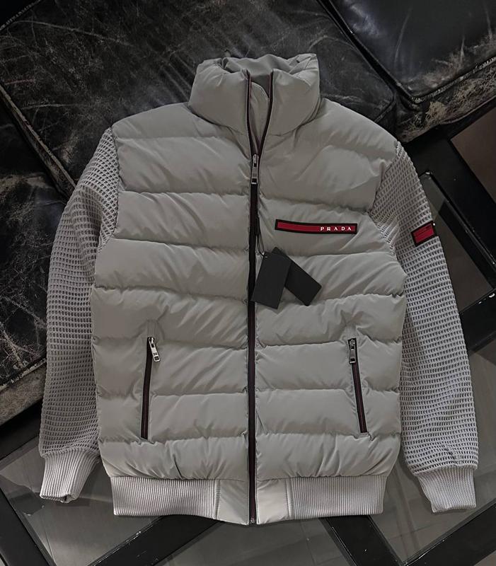 Мужская стильная куртка prada на зиму-осень в бежевом цвете premium качества