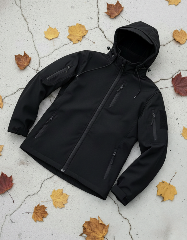 Куртка з надійної та практичної плащівки Softshell на флісі - Дві бокових кишені на змійці,нагрудний карман,бічні кишеньки на рукавах. Також є наліпка під шеврон - Капюшон і рукава регулються Розміри: S, M, L, XL 30