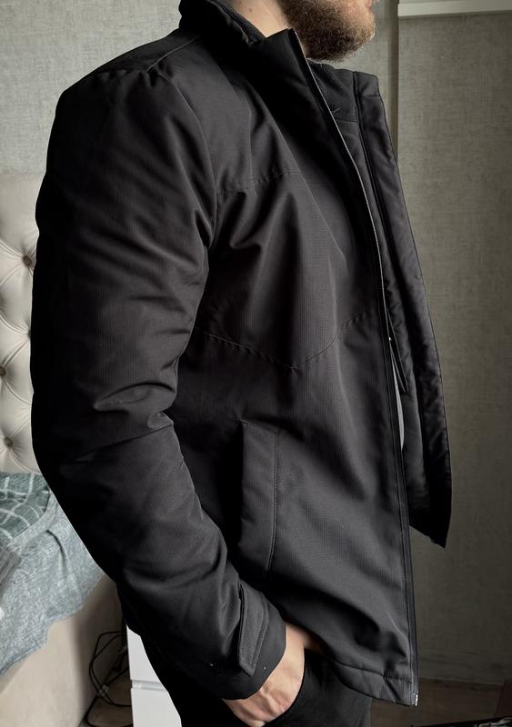 Демісезонна куртка на осінь або теплу зиму. На чоловіка на фото куртка замала, тому орієнтуйтеся на заміри: Довжина 75 см Рукав 66 см Плечі 48 см Відстань між проймами (напівобхват в грудях) 58 см Напівобхват в талії 53 см. 4 робочі кишені, одна з них внутрішня.