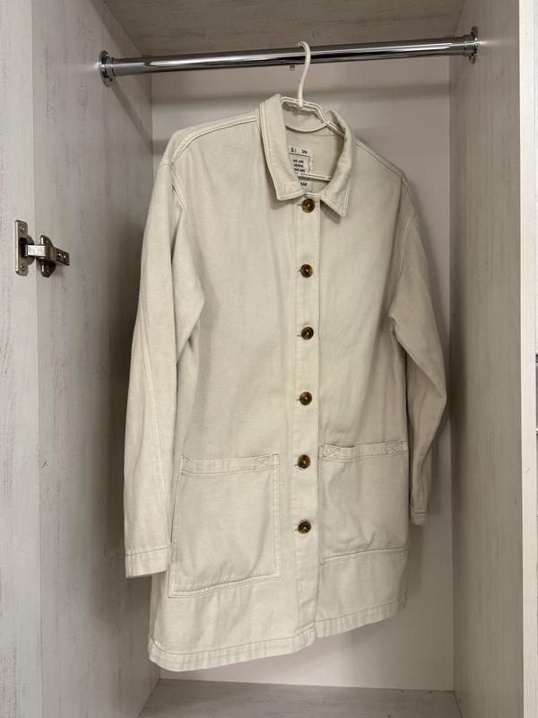 Куртка-сорочка пісочна у щільному джинсі оверсайз 100% котон Напівобʼєм грудей 55см Довжина 76см Довжина рукава 53см Плече 18см