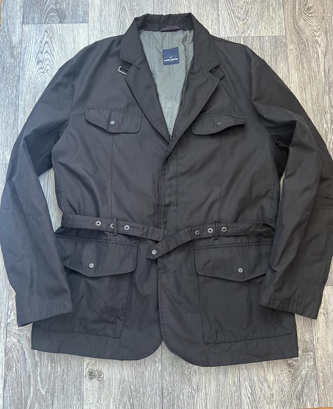 Якісна куртка в класичному стилі, оригінал . Водостійка тканина . Цікавий пояс , можна носити без нього . На фурнітурі логотип бренду . Є один невеличкий дефект, на останньому фото видно .