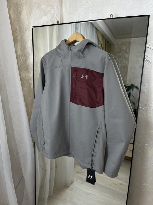 Розмір по бірці Л, також добре підійде на ХЛ Оригінальна куртка Under Armour з ColdGear Infrared. Softshell-матеріал захищає від вітру та дощу. Тепла флісова підкладка, функціональні блискавки. Ідеально для тренувань на вулиці.