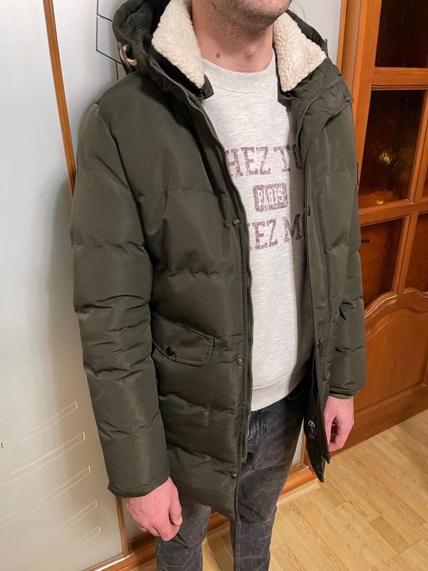 Чоловіча зимова куртка, у хорошому стані) Розмір: - Довжина (від плеча до крайньої нижньої точки) 76 см - Довжина рукава 60 см - об'єм грудей, талії та стегон 53 см Комір (білий пухнастий) відстібається. З усіх питань з радістю відповім у особисті повідомлення)