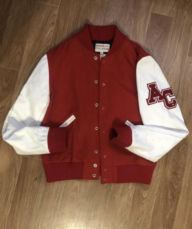 Розмір: XL Напівобʼєм: • Грудей: 51 см • Стегон: 45 см Довжина виробу: 58 см Довжина рукава: 69 см Сезон: тепла весна, тепла осінь. Склад: 75 % вовни 25 % нейлону Рукава : шкіра Підкладка: 100 % поліестер Застібається на кнопки Без дефектів.