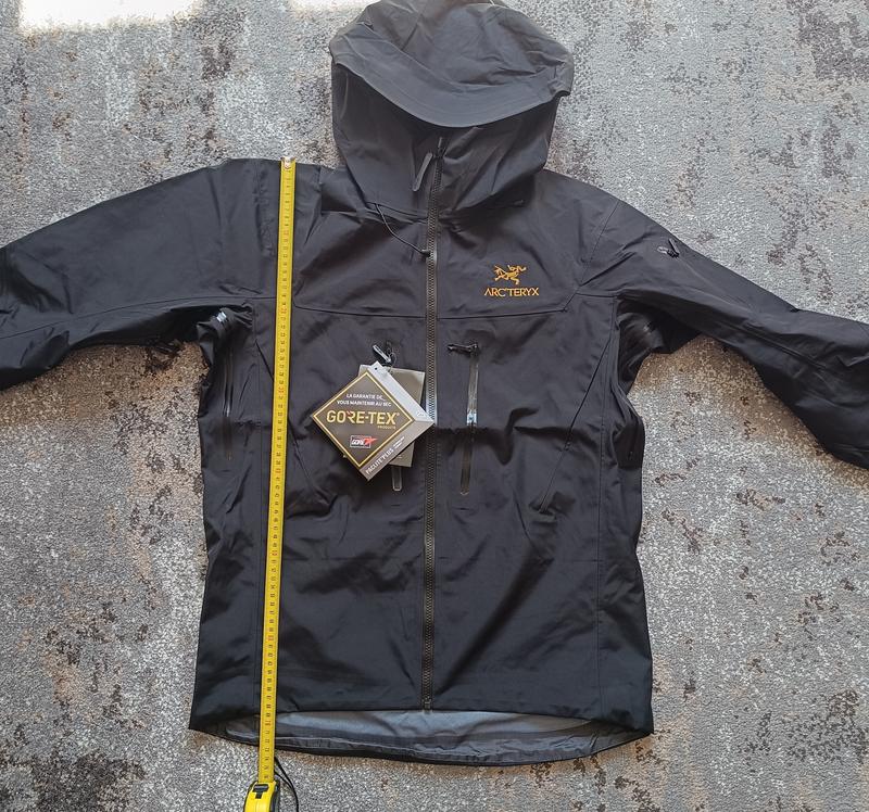 Чорна нова куртка Arcteryx Alpha SV з вітрового матеріалу, ідеально підходить для захисту від вітру та дощу. Максимальний комфорт у будь-яких умовах.