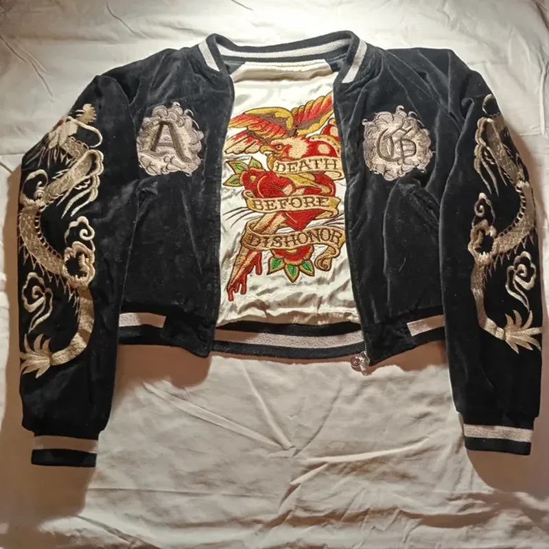 Бомбер r p jacket / reversible / tattoo design / velvet