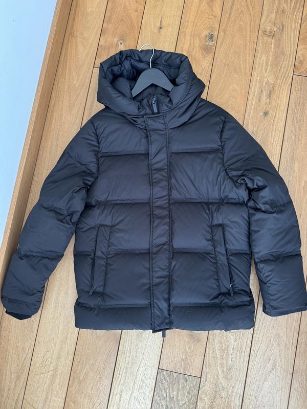 Чорна чоловіча пухова куртка, нова. Можу скинути посилання де купувала, чи додаткові фото. Дуже приємна на дотик. На скрінах є заміри цієї моделі, розмір М