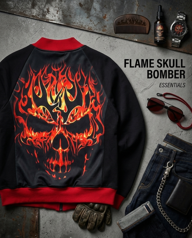 куртка (бомбер) з принтом Skull Blast. "зроблено вручну з коханням" силь унісекс куртка-бомбер з принтом вогняного черепа, що часто зустрічається в дизайні одягу брендів готичної та альтернативної спрямованості. дуже якісний пошив і тканина красива підкладка внутрі бомбер у чорному кольорі з контрастною червоною обробкою на комірі, манжетах і нижній гумці. Даний тип одягу характеризується спортивним стилем, наявністю застібки-блискавки та бічних кишень без нюансів заміри довж 60см,ог 56см,рукав від горловини 72см