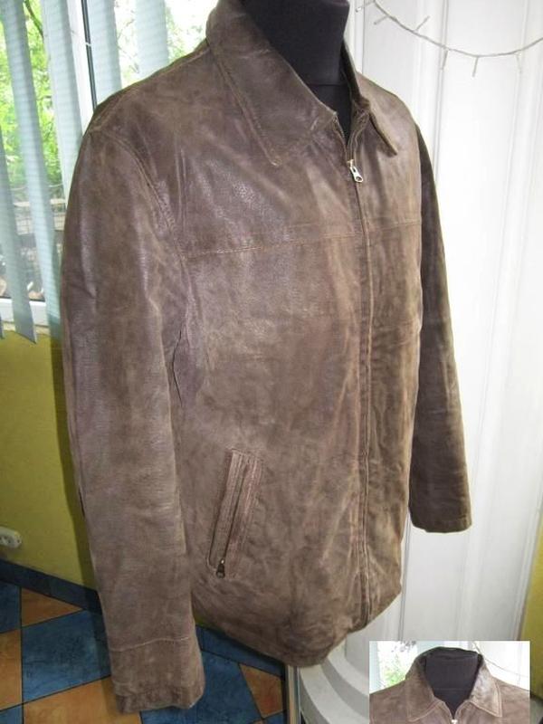 Кожаная мужская куртка GIANNI MARIO LANO. Лот 524 Стильная куртка для мужчин. Изготовлена в Китае по заказу фирмы GIANNI MARIO LANO, Италия. Натуральная кожа - нубук. Мягкая, лёгкая, плотная. Подкладка: полиэстер. Размер указан EUR 52, примерно 60/62. Фактические замеры: Полуобхват груди — 64 см. Полуобхват талии — 63 см. Полуобхват бёдер — 62 см. Ширина плеч — 54 см. Длина куртки — 76 см. Длина рукава от воротника — 84 см. Длина рукава от плечевого шва — 65 см. Замеры сделаны мягким сантиметром в лежащем положении. Застёгивается на молнию. 4 внешних (2 на молниях) и 2 внутренних кармана (1 на молнии). Б/у. Следы носки не критические, см. фото.