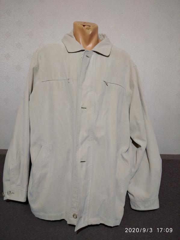 отличная деми курточка батального размера от Еnzo Carlito . софт, мягкий, приятный материал похож на замш. цвет светлый беж. на подкладе, не утеплена. застёгивается на металл змейку и планку с пуговицами. 2 верхних боковых кармана на змейках, 2 нижних боковых кармана, внутри 2 больших кармана на змейках и 1 маленький.