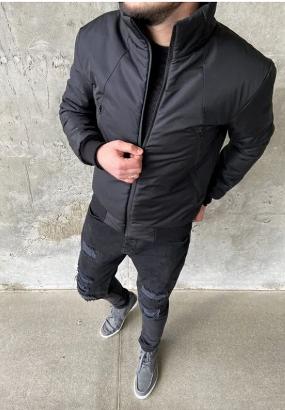 склад 1 Дуже зручна і практична демісезонна куртка чорного кольору. Захистить від вітру. Є внутрішній кишеню. Великі місткі бічні кишені. Температурний режим від -2 до +15 градусів. Матеріал: щільний плащівка на 150м синтепоні. Блискавки прогумовані, вологостійкі. Манжети-гумка "рібана". Відмінна якість! Розміри: S, M, L, XL.
