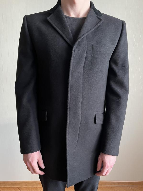 Пальто осінь-весна, гудзики приховані, колір чорний. Приталене, ідеально на піджак. Розмір S, заміри дивіться на фото. Стан гарний. Є дефект: розійшовся шов на підкладі рукава (див. Фото). Відправка після мінімальної передплати за доставку.