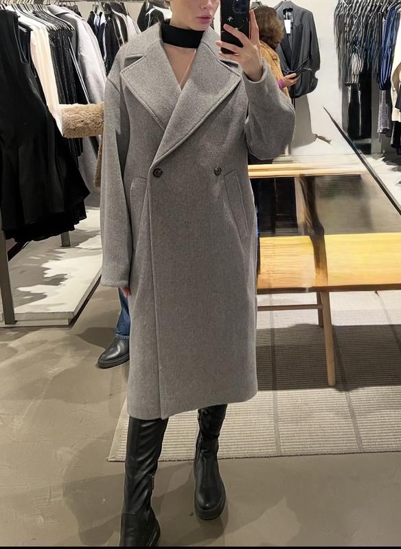 Пальто в ідеальному стані. Мій зріст 173, подобається, що воно таке оверсайз. у складі шерсть 70-80%. дуже тепле. Покупала почти за 200€