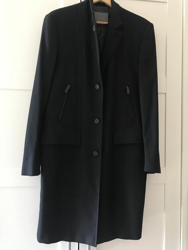 Пальто Bally. Дуже якісне , на 100% складається з вовни. По бірці розмір 52, L. Спереду є 2а кишені{ фурнітура Lampo}, а під ними є ще 2а містких кишені які прикриваються краями верхній частині крою{ тобто зовні їх не видно, але вони є, зашиті} Ні однієї маленької гудзики на рукаві, абсолютно не видно, т до вони всередині. У ціні враховано. Заміри: плечі 50 см, груди 58 см, рукав 70 см, довжина виробу 108 см Стан новий, без слідів шкарпетки.