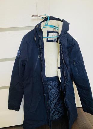 Парку турецької ТМ DeFacto, є в розмірі XS, колір темно-синій , 2 кишені зовні, 1 кишеня внутрішній. Застібка - блискавка і гудзики. Верх - котон. Тканина зверху щільна, не продувається. Розмір XS заміри - Довжина рукава - по зовнішній стороні рукава від плечового шва до закінчення рукава 64см Ширина плечей - по плечовому поясу виробу від крайньої точки лівого плеча, до крайньої точки правого плеча - 45см Довжина виробу. на лицьовій стороні, від верхньої точки плеча до низу вироби.- 82 По спині - 89см Напівобхват грудей. на лицьовій стороні - 54 см