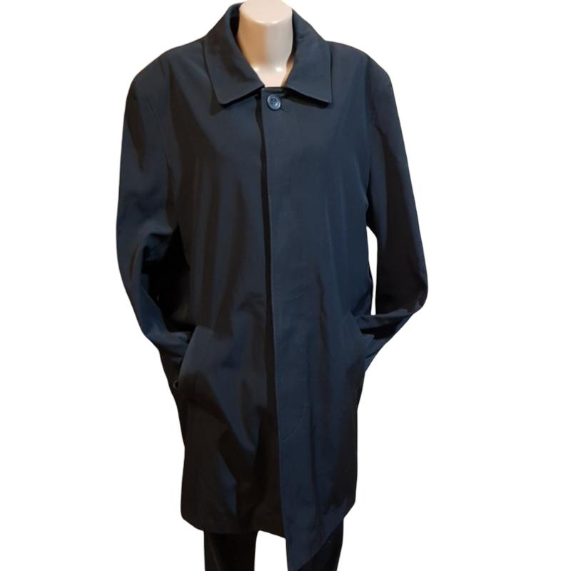 Чоловічий плащ, тренч 56-58р. Пог-66, Довжина-101, Довжина рукава-66, Довжина плеча-16. класний склад тканини(на бірці). Чорний колір. Потайна застібка. Дві кишені .Є внутрішній кишені. Шліца ззаду. Стан хороший ,без дефектів, но є забруднення . На високого чоловіка зростом 182см. Є підстібка, яку можна зняти ( вона на гудзиках )