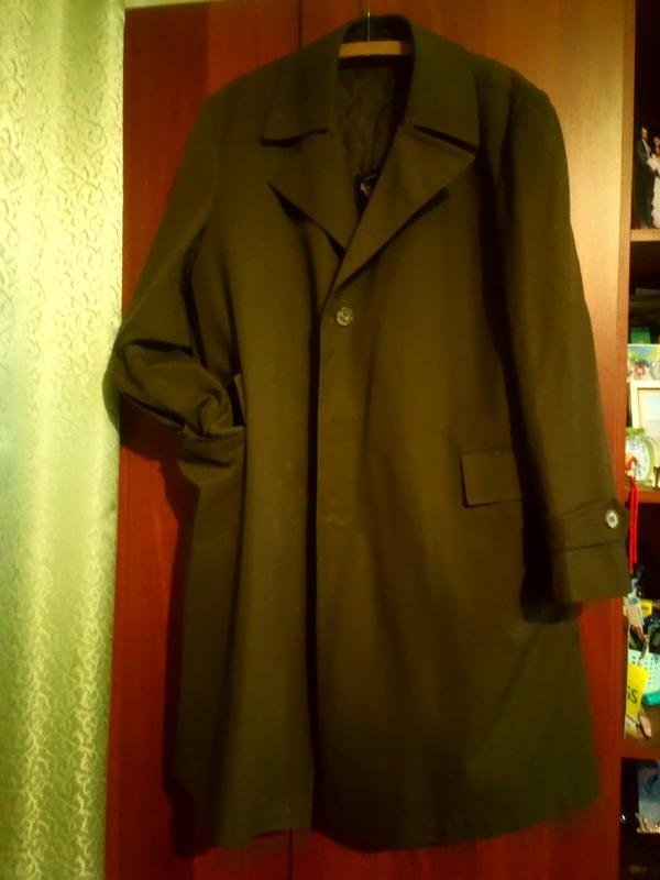 Класний, добротний утеплений плащ. Всередині підстібка на блискавці. Довжина 105 см. Від пахви до пахви по спині 66 см.. Плечі 54 см.