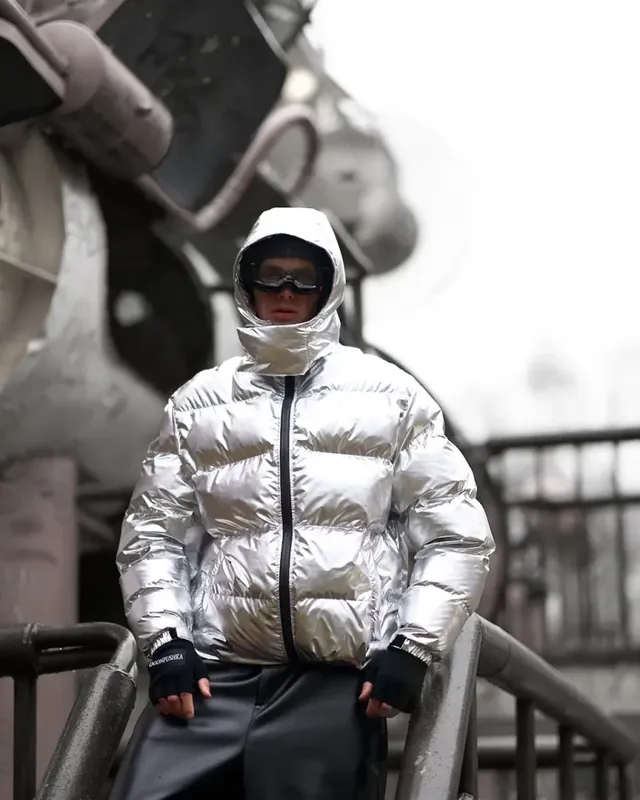 Матеріал верху: плащівка з глянцевим эффектом, схожим на фольгу Утеплювач: біо-пух. Температурний мінімум: до - 30 С. ХS Полуобхват груді: 62см Довжина (від горлового шва до пояса): 66см Довжина рукава( від плечевого шва): 64см Внутренняя длинна рукава: 42см S Полуобхват груді: 63см Довжина (від горлового шва до пояса): 68см Довжина рукава( від плечевого шва): 65см Внутренняя длинна рукава: 43см М Полуобхват груді: 64см Довжина (від горлового шва до пояса): 70см Довжина рукава( від плечевого шва): 66см Внутренняя длинна рукава: 44см L Полуобхват груді: 65см Довжина (від горлового шва до пояса): 72см Довжина рукава( від плечевого шва): 67см Внутренняя длинна рукава: 45см ХL Полуобхват груді: 67см Довжина (від горлового шва до пояса): 74см Довжина рукава( від плечевого шва): 68см Внутренняя длинна рукава: 46см