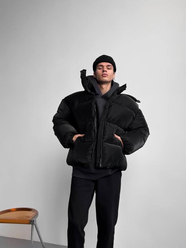 Зимова оверсайз куртка пуховик бежево чорна blaid rd413