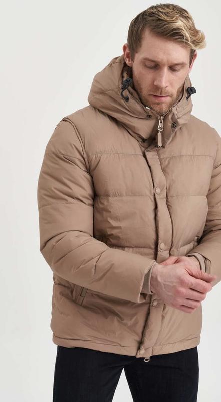 Бежевий чоловічий пуховик-трансформер із капюшоном