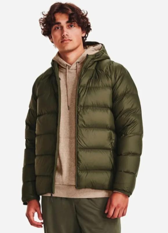В наявності розмір: XL. Обхват грудної клітини 108-116 см. Довжина виробу по спині від капюшону 75 см. Швидка доставка. Товар в Україні. З питань додаткових фото або замірів-пишить, радо відповімо. Пуховик чоловічий від відомого американського бренду Under Armour. Ця модель виконана з вітрозахисного нейлону. Як наповнювач використовується гусячий пух Fill Allied 600. Технологія UA Storm захищає від негоди, відштовхує воду і при цьому не жертвує повітропроникністю. Є регульований капюшон із еластичною гумкою. Для зручності використання передбачено наявність бічних кишень на блискавці. Пуховик Armour Armour Down 2.0 Jkt ідеально підійде для повсякденного використання в прохолодну пору року.