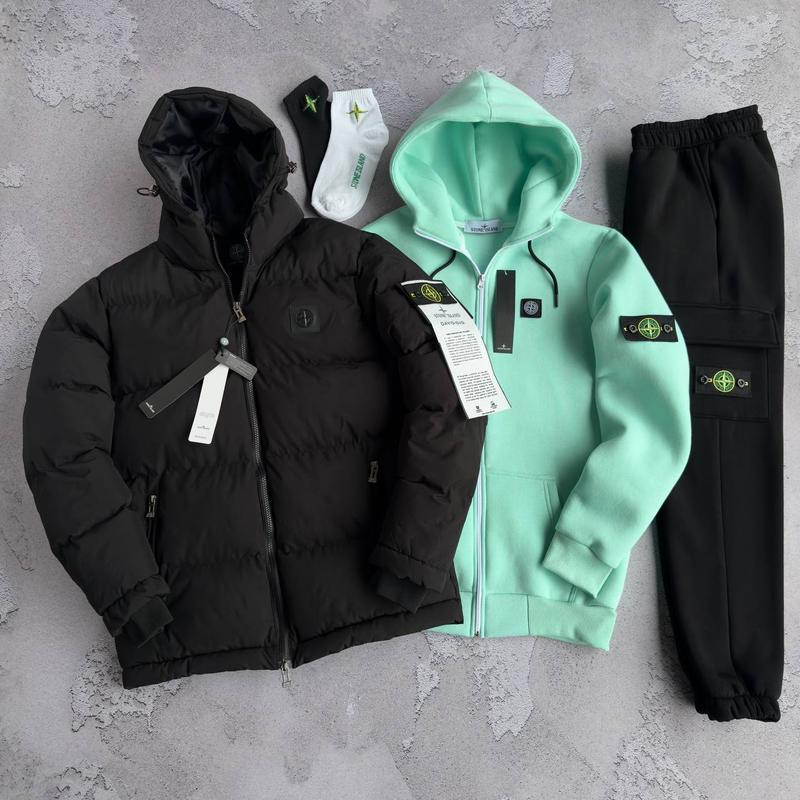 Набір зима stone island : куртка-зіп худі-штани-2 пари шкарпеток у подарунок❄️