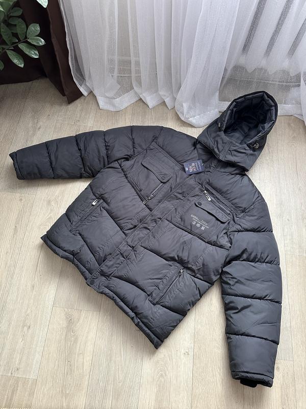 чоловіча зимова куртка пуховик в ідеальному стані, одягнутий був від сили разів 8, так як куртка дуже тепла, і не було в ній потреба, а на цей сезон стала вже малою, по якості чудова і тепла Розмір ХЛ-2ХЛ Колір сірий графіт Є внутрішній карман на блискавці Капюшон вітстібний на липучці Заміри ПОГ 62 см Плечі 50 см Рукав 65 см Довжина 75 см Висота ворота 10 см