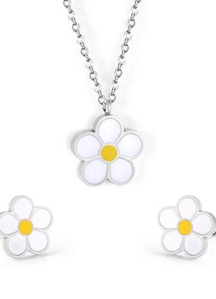 Медсталь набір прикрас ромашка сережки підвіска набір на літо квіточки ромашки дитині прикраси біжутерія медзолото срібний ніжний