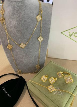 Брендовый набор подвеска браслет кольцо серги с камнями позолота