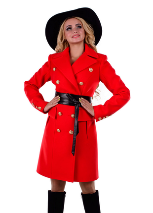 Жіноче повсякденне класичне осіннє весняне укорочене пальто з поясом тканина кашемір та наповнювач ватін і підкладка