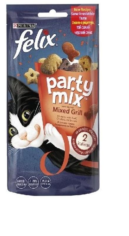 Ласощі для котів purina felix party mix гриль мікс зі смаком курки, яловичини та лосося 60...