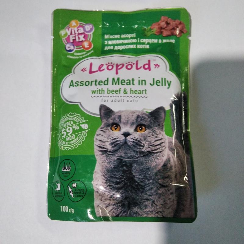 Жидкий корм для котов мясное ассорти с говядиной и сердцем в желе 100гр