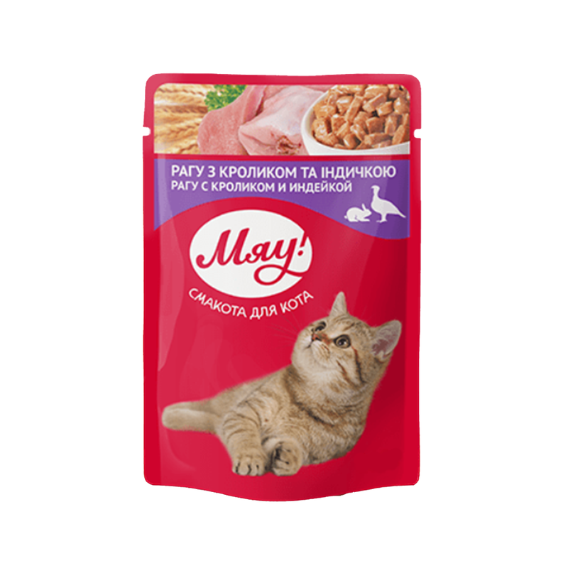 В одному блоці 24шт вагою 85г. 76% м’яса у кожному шматочку Склад: м'ясо та субпродукти тваринного походження, в тому числі з кролика не менше, ніж 4%, з індика не менше 4%, злаки, екстракти рослинних білків, мінерали, вітаміни (в т. ч. таурин), цукри. Кормова (поживна) цінність 100 г корму: білок – 7 г, жир – 4,5 г, зола – 2,5 г, клітковина – 0,3 г, вологість – 82 г. Вміст вітамінів та мінералів: вітаміни А – 1200 МО/кг, D3 – 160 МО/кг, Е – 5 мг/кг, кальцій – 3,5 г/кг, фосфор – 2,5 г/кг. Термін придатності 2 роки з дня виготовлення
