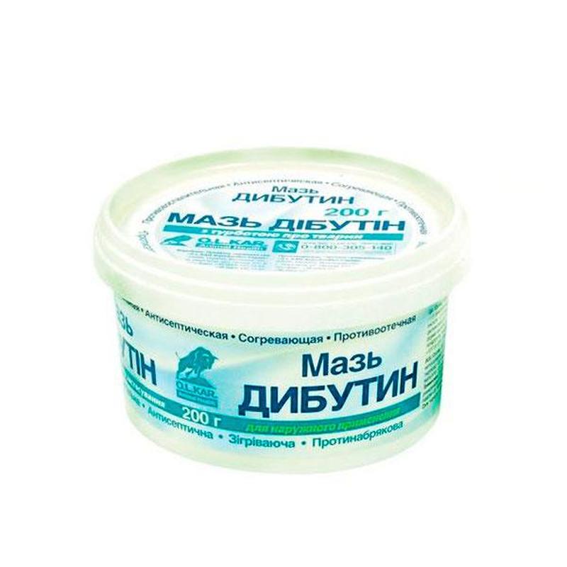 Дибутин мазь предназначена для лечения ревматизма, мастита и полиартрита у животных. Она обладает противовоспалительным и противоотечным действием. Применяется для лечения крупного скота, лошадей и, в редких случаях, мелких пушистых зверей. Важно! Ниже приведено описание мази Дибутин, которое является собственной упрощенной версией сайта **************** Оно основывается на информации, представленной в официальной инструкции. ПЕРЕД ИСПОЛЬЗОВАНИЕМ ОБРАТИТЕСЬ К ВЕТЕРИНАРУ! Дибутин мазь - инструкция по применению Дибутин мазь используется для лечения ревматизма, мастита или полиартрита у животных. Имеет противовоспалительный и противоотечный эффект. Используется для лечения крупного сельскохозяйственного скота, лошадей и в редких случаях, мелких пушистых зверей. В состав Дибутин мазь входят основные действующие вещества, такие как метамизол натрия, метилсалицилат и глицерин, а также есть ряд дополнительных компонентов, которые обеспечивают высокую степень эффективности препарата. Купить Дибутин мазь можно в специализированном ветеринарном интернет-магазине Фаунамаркет. В нашем онлайн каталоге вы найдете лучшие и доступные по стоимости лекарственные препараты для животных. Дибутин мазь - фармакологическое действие Мазь имеет комплексный противовоспалительный эффект, а также умеренное согревающее и противоотечное воздействие во время применения. Оказывает антисептический эффект, защищает кожу от пересушивания. После использования, на поверхности кожи создается защитное покрытие, которое способствует устранению негативного воздействия внешней среды на поврежденный кожный покров. Дибутин мазь - показания к применению Купить Дибутин мазь рекомендовано при: - Ревматизме, включая острые формы; - мастите; - полиартрите; - инфекционном неспецифическом полиартрите; - подагре и других заболеваниях. Дибутин мазь - противопоказания, способ применения и дозировка Противопоказанием к использованию мази является индивидуальная чувствительность или непереносимость компонентов. Кроме того, не рекомендовано использовать средство, если есть угнетение функции печени или почек, а также если у животного есть атеросклероз. Как применять Дибутин мазь? Средство используют наружно на пораженном участке кожи. Необходимо набрать небольшое количество мази, после чего втереть его в кожу мягкими движениями. Дозировка Дибутин мази и продолжительность лечения зависит от индивидуального течения заболевания у животного. Рекомендовано проконсультироваться с лечащим ветеринаром, который назначит дозу и срок использования лекарственного препарата. Можно купить Дибутин мазь в интернет-магазине Фаунамаркет, где представлен широкий ассортимент высококачественных и доступных по стоимости ветеринарных препаратов, которые отличаются эффективностью и надежностью. Мы предлагаем лучшие условия оформления заказа, оплаты и доставки покупки по Украине, а также у нас вы можете получить профессиональную консультацию по выбору средства для животного. Особые предосторожности при применении Побочные эффекты от Дибутин мази проявляется редко в виде небольшого покраснения и зуда, который пропадает после прекращения использования средства. Чаще всего реакция является индивидуальной непереносимостью компонентов в составе препарата животным. 
