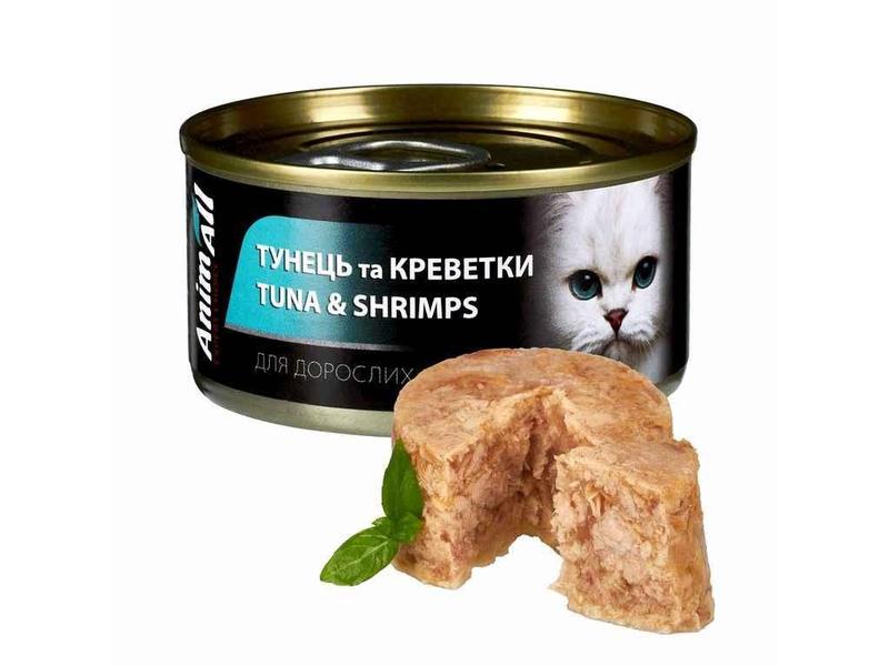 Вологий корм AnimAll тунець з креветками для кішок зі свіжим мясом тунця та креветок - це справжнє задоволення для вашого улюбленця. У консервах міститься свіже мясо, щоб забезпечити вашій кішці високу якість харчування.