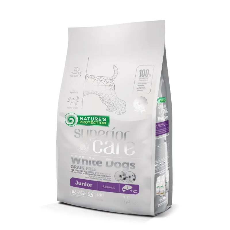 Сухой беззерновой корм Nature's Protection Superior Care с лососем для юниоров всех пород – это полноценный и сбалансированный корм Супер Премиум сегмента с источником белка и сырья высочайшего качества, помогающий бороться с коричневыми пятнами от слез и слез. поддерживать кожу и шерсть здоровыми. Корм содержит формулу Tear Stains off – тщательно подобранный комплекс аминокислот и хорошо сбалансированных ингредиентов в составе. Обогащен компонентами, обеспечивающими отличную производительность для хорошего самочувствия питомца. Полноценный состав сухого корма не только обеспечит вашего любимца всеми необходимыми питательными веществами, но и обладает отличными вкусовыми качествами и усвояемостью. Основной источник белка в этом полноценном сухом корме для юниоров – лосось. Лосось как источник белка богат Омега кислотами, способствующими укреплению иммунной системы и поддержанию здорового развития. Лосось как источник белка: Гипоаллергенный источник белка Легкоусвояемое Обогащено необходимыми витаминами и минералами Улучшает состояние кожи и шерсти Отлично вкусит Источник Омега-3 жирных кислот Сбалансированный состав этого сухого корма для юниоров – обогащен клиноптилолитом природного вулканического происхождения, MicroZeoGen. Он способствует выведению токсинов из организма питомца, и после детоксикации ценные питательные вещества, витамины и минералы легко абсорбируются организмом. Здоровый рост Формула обогащена животными белками, которые обеспечивают энергией, необходимой для здорового развития и выносливости растущих собак.