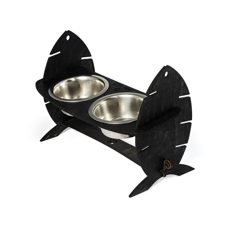 Кормушка для котів cat joy скелет риби з регулюванням висоти венге на 2 миски