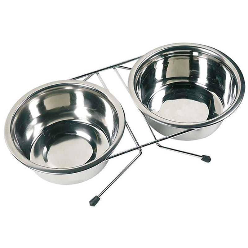 Миски Flamingo Dinner для собак на підставці для комфортного вживання їжі. Миски на підставці займають мало місця та мають привабливий зовнішній вигляд. Підійдуть як для їжі, так і для води. Миски зроблені з нержавіючої сталі, завдяки чому їжа не окислюється, а вода залишається свіжою та чистою. - Підставка не дряпає підлогу. - Металеві ніжки не ковзають по підлозі завдяки гумовим наконечникам. - За необхідності миску можна змінити. - Обсяг мис підбирається з урахуванням розміру та породи вашого улюбленця. - Набір легкий, компактний та простий у догляді, його можна взяти з собою у дорогу. Діаметр: 9-13 см Об’єм: 380 мл Матеріал: харчова нержавіюча сталь