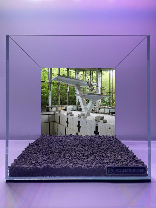 Зображення являє собою акваріум, в якому представлений знімок занедбаного басейну. Стиль зображення можна охарактеризувати як мінімалістичний і концептуальний. Зображення не дотримується якогось конкретного художнього напряму, як-от імпресіонізм, поп-арт, і традиційний китайський живопис. Натомість, воно фокусується на контрасті між прозорістю акваріума і зображенням занедбаного місця. Колірна палітра стримана і в основному складається з відтінків фіолетового, сірого і темно-синього. Деталі інтер'єру старого басейну використовуються як основна ілюстрація. Текстура акваріума гладенька, представлене зображення басейну має трохи більшої фактури. Основний компонент композиції - це контраст між зображенням занедбаного місця, та його прозора рамка. Використовується цифрове зображення і прозора скляна рамка акваріума.