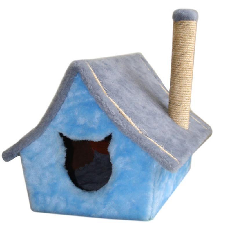 Домик для кошек и котов изготовлен из корпуса дсп и обшит мехом Интересное решение дымоход служит когтеточкой для когтей , обмотка натурального долговечного материала сизаль Размер : 30 х 40 х 38 Материал: сизаль/шерсть
