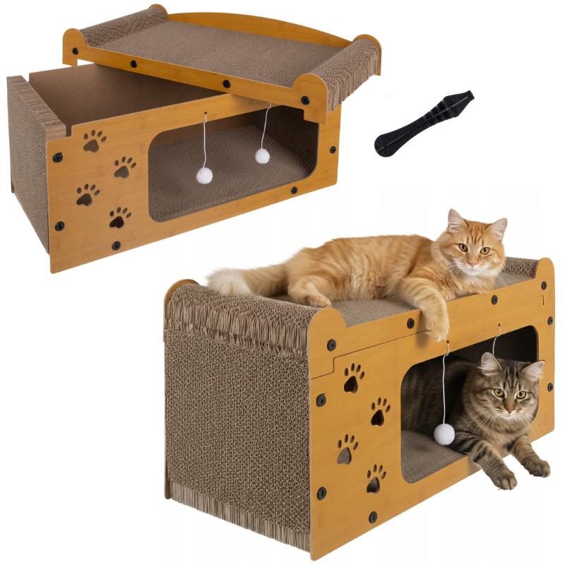Когтеточка для кошки purlov — двухуровневый домик 3в1 из эко картона и hdf, 29×56×27 см, с...
