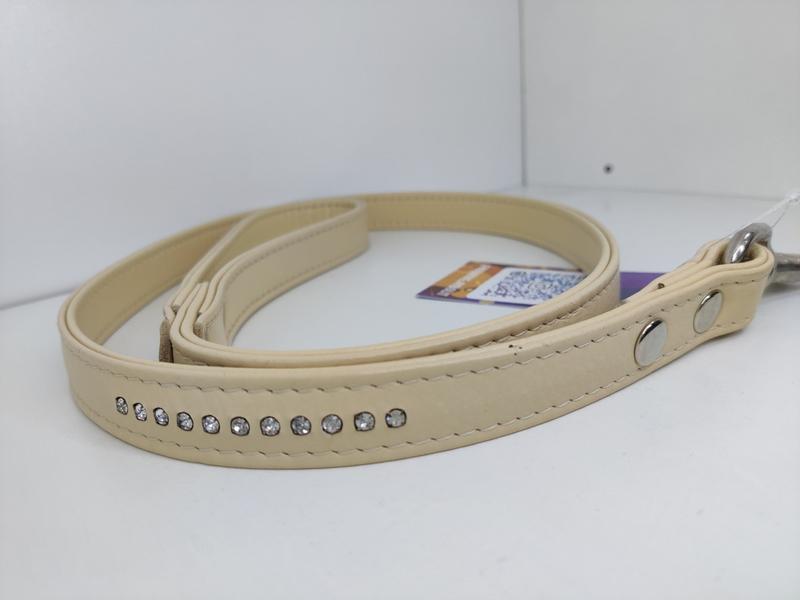 Шкіряний повідець kareline бежевого кольору з прикрасами довжина: 1000мм ширина:20мм