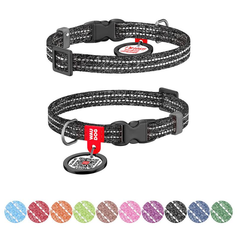 Ошейник для котов и мелких пород собак из восстановленного хлопка waudog re-cotton с qr па...
