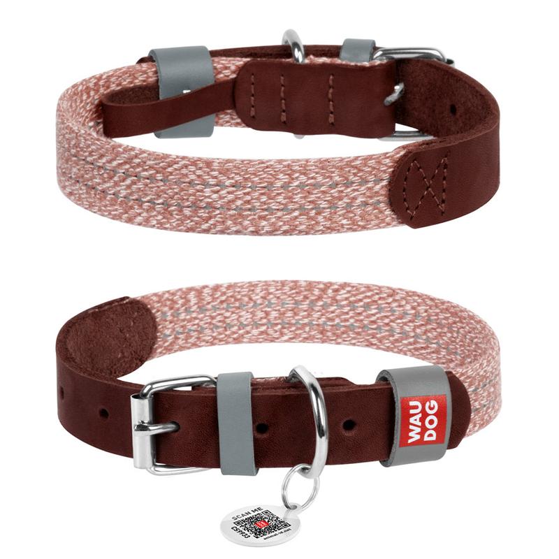 Ошейник для собак из кожи и восстановленного хлопка waudog classic, l, ш 25 мм, дл 38-49 с...