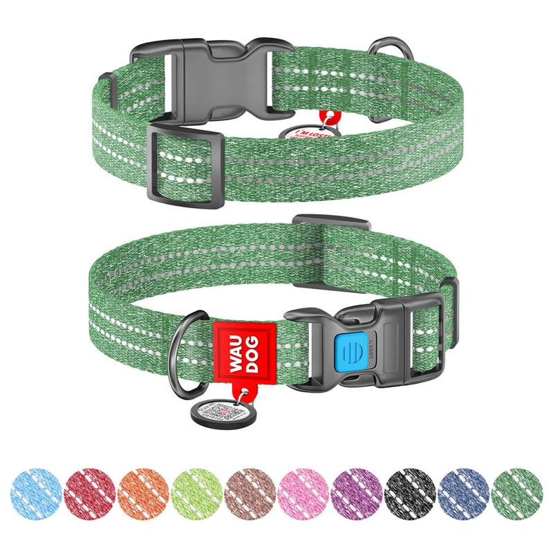Ошейник для собак из восстановленного хлопка waudog re-cotton с qr паспортом, светоотражаю...