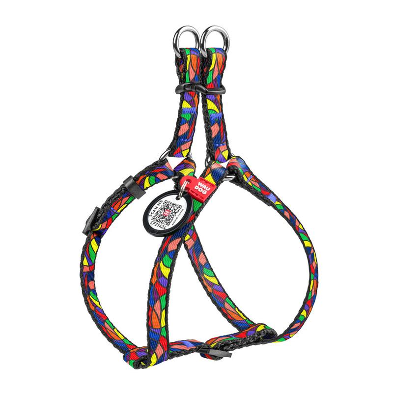 Шлея для собак waudog nylon c qr паспортом, рисунок "витраж", пластиковый фастекс, ш 10 мм...