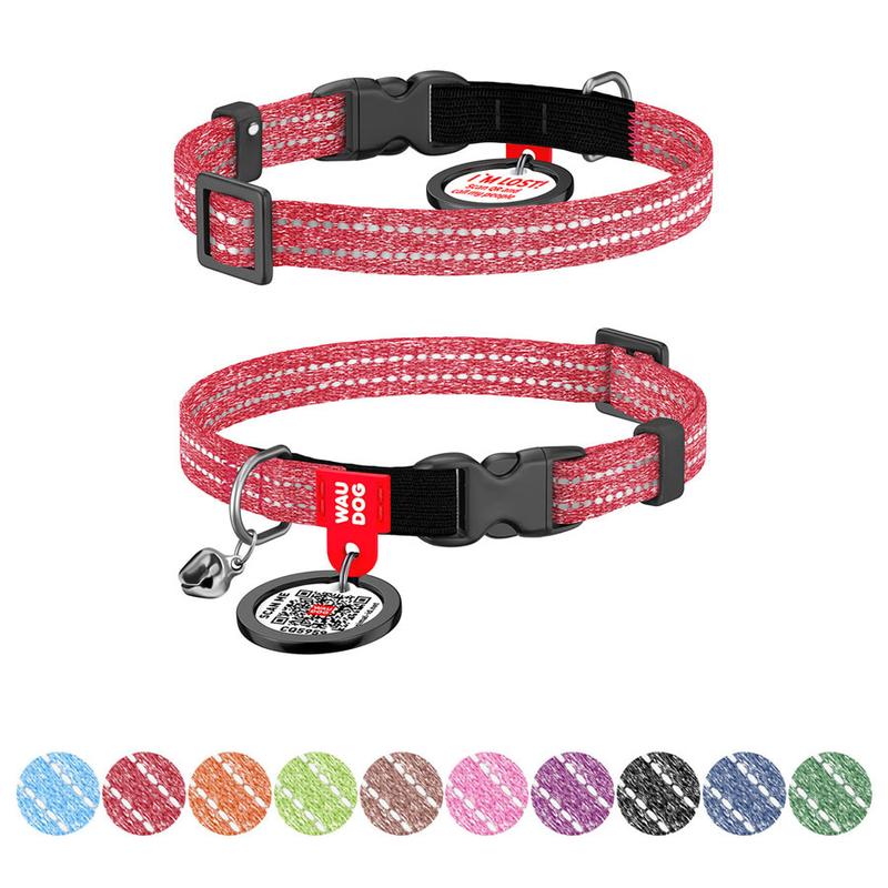 Ошейник для котов из восстановленного хлопка waudog re-cotton с qr паспортом, светоотражаю...