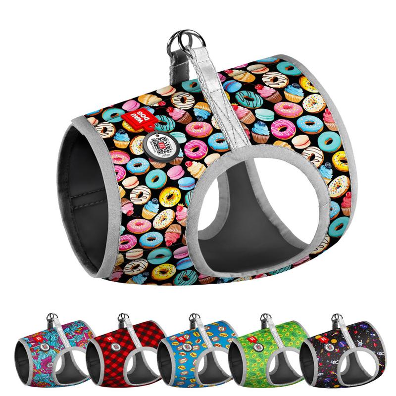 Шлея для собак мягкая waudog clothes c qr паспортом, рисунок "пончики", s1, в 40-45 см, с...