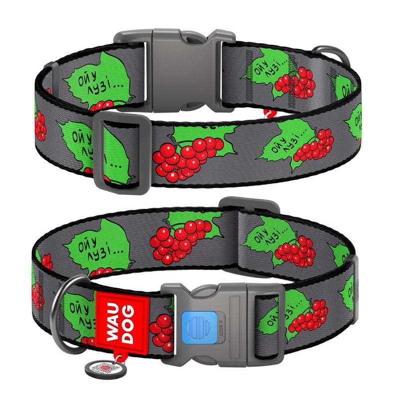 Ошейник для собак нейлоновый waudog nylon c qr-паспортом, рисунок "калина", пластиковый фа...